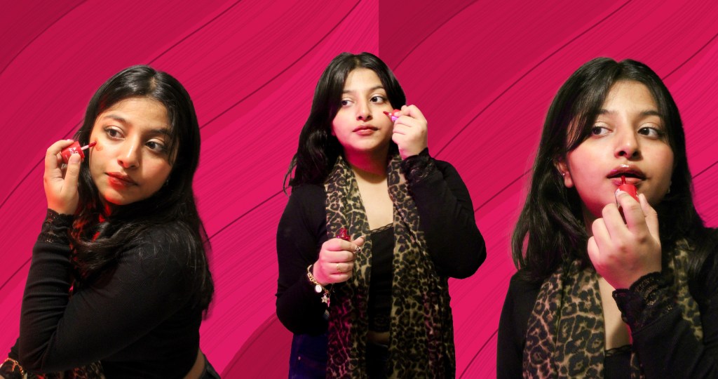 Aanya Tyagi, 23, a law student at Galgotias University, Noida, shared, “Last weekend, I had a rooftop family function to attend. After a long day of shopping with my family, I didn’t have an opportunity to go home and freshen up,” she recalled with a laugh. “All I had in my bag was my Lakme lipstick of shade, Coffee Command, and a small jar of Vaseline.”